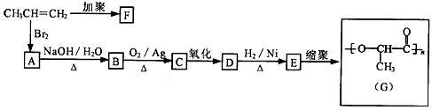 2、推断题  已知:①由丙烯经下列反应可得到F、G两种高分子化合物,它们都可用于制作各类塑料制品。 ②B属于二元醇;D、E分子中均含有羧基。 ③有机化合物分子中有几种化学环境不同的氢,核磁共振氢谱中就有几个峰。