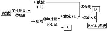 (3)电子工业曾用质量分数为30%的FeCl3溶液腐蚀敷有铜箔的绝缘板制印刷电路板,为了从使用过的废腐蚀液中回收铜,并重新得到FeCl3溶液,设计如下实验流程。