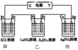 | 氯化亚铜(CuCl) | 白色固体不溶于水 | 碱式氯化铜 | 绿色固体不溶于水 Ⅱ.探究实验 (1)提出假设:①红色物质一定有铜,还可能有Cu2O;②根据以上资料,白色物质化学式可能为 。 (2)实验验证: 取电解CuCl2溶液后的阴极碳棒附着物,洗涤、干燥,连接下列装置进行实验,验证阴极产物。  实验结束后,碳棒上的白色物质变为红色,无水硫酸铜不变色。 ①碳棒上的红色物质有无Cu2O? (填“有”或“无”),请简要说明的理由: ; ②在c装置后将气体通入硝酸银溶液中,若出现白色沉淀,可说明提出假设②中的白色物质一定存在,写出装置b中发生反应的化学方程式: 。 (3) 由以上实验分析可知:电解CuCl2溶液的阴极上发生的电极反应式为Cu2++2e-  Cu和                            。 2、选择题  将1L含有2mol?CuSO4和1molNaCl的水溶液用惰性电极电解.电解一段时间后,一个电极上得到0.4mol?Cu,另一电极析出的气体(  ) 3、填空题  (11分)右图所示为相互串联的甲、乙两电解池,试回答: 4、选择题   在下图装置中,若通电一段时间后乙装置左侧电极质量增加,下列说法错误的是 5、选择题  如图a、b、c、d均为铂电极,供选择的电解质溶液如下表: