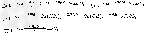 5、实验题 I?化学兴趣小组对用铜制取硫酸铜晶体的试验方案作研究。甲组同学将铜粉投入盛有稀硫酸的容器中,不发生反应。他们向容器底部缓缓鼓入氧气,溶液慢慢变蓝色,若在溶液中放置有些铂丝,反应速率明显加快。此时,其?他组的同学提出方案如下: