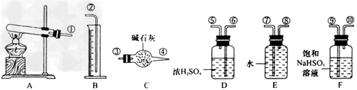 ,便决定设计试验测定反应生成的SO2、SO3和O2的物质的量,并经计算确定该条件下CuSO4分解反应方程式中各物质的化学计量数。试验可能用到的仪器如下图所示