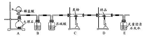 B中的溶液是??????;实验后经测定样品完全反应,D中剩余固体质量为3.36g,且测得E中沉淀质量为6.0g,则样品中Fe3O4的质量分数为??????;实验装置中有一明显缺陷是??????。