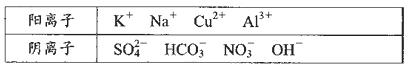 水源的入口处采集水样,并进行了分析,给出了如下实验信息:其中一处水源含有A、B两种物质,一处含有C、D两种物质,一处含有E物质,A、B、C、D、E为五种常见化合物,均由下表中的离子形成: