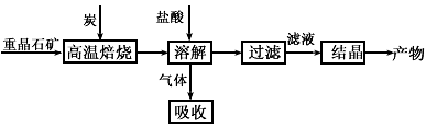 3、填空题 工业上制备BaCl2的工艺流程图如下图某研究小组在实验室用重晶石(主要成分BaSO4)对工业过程进行模拟实验。