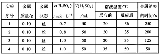 4、填空题 下表是某兴趣小组通过实验获得的稀硫酸与某金属反应的实验数据