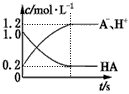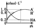 A-+H+。将1.0 mol HA分子加入1.0 L水中,下图中,表示溶液中HA、H+、A-的物质的量浓度随时间而变化的曲线正确的是 [???? ]