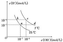 试题分析:A、由图可知,a点对应的是25℃时纯水的离子浓度,c(H+)=1×10-7mol/L,pH=7,c点对应的是T℃时纯水的离子浓度,c(H+)=1×10-6mol/L,pH=6,所以pH(c)<pH(a),错误;B、T℃时纯水的离子积常数是1×10-12,则d点对应的溶液中c(H+)=1×10-7mol/L<c(OH-)=1×10-5mol/L,所以溶液呈碱性,碱性条件下K+、Ba2+、NO3-、I-都不反应,可以大量共存,正确;C、根据所给酸的电离常数可知HF的酸性比醋酸的酸
