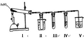 3、实验题  (9分)、已知FeSO4在不同条件下分解得到的产物不同,可能是FeO和SO3,也可能是Fe2O3、SO3和SO2。某研究小组探究在酒精喷灯加热条件下FeSO4分解的气体产物。已知SO3的熔点是16.8℃,沸点是44.8℃