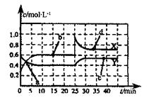 (2)由图可知10~25min平衡状态时,X表示的生成物的浓度变化量为(0.6-0.2)mol/L=0.4mol/L,Y表示的反应物的浓度变化量为(0.6=0.4)mol/L=0.2mol/L。即X表示的生成物的浓度变化量是Y表示的反应物的浓度变化量的2倍,所以X表示NO2浓度随