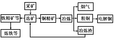 2、填空题 铜陵有色金属集团公司是电解铜产量全国第一的大型企业。其冶炼工艺中铜、硫回收率达到 97%、87%。下图表示其冶炼加工的流程: