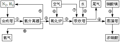 5、填空题 工业合成氨与制备硝酸一般可连续生产,流程如下