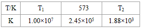 2NH3(g);△H<0。下表为不同温度下该反应的平衡常数。由此可推知,表中 T1____573K(填“>”、“<”或“=”)。