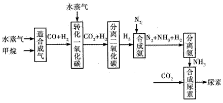4、填空题 我国有丰富的天然气资源。以天然气为原料合成尿素的主要步骤如下图所示(图中某些转化步骤及生成物未列出):