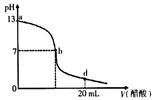 5、选择题 向20 mL氢氧化钠溶液中逐滴加入0. 2 mol/L醋酸溶液,滴定曲线如下图所示下列说法不正确的是?(??????)