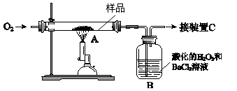 (1)装置中,A为高温灼烧装置,B为气体吸收装置,C为检测尾气中是否含有SO2的传感器。取m g该中药样品于装置A中,经充分反应,使硫元素全部转化为SO2和SO3,在B中得到白色沉淀,传感器(装置C)未检测到SO2。