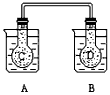 2、填空题  如图所示,在常温下容器A中盛有500mL蒸馏水,在容器B中盛有500ml 1mol/L的盐酸,在烧瓶C和D中充满二氧化氮气体,并用导管将它们连通。向A容器中加入50g硝酸铵晶体,小心搅拌,使其迅速溶解;向B中加入10g苛性钠固体,小心搅拌也使其迅速溶解,随着A、B中固体物质的溶解,烧瓶C和D中气体的颜色变化是_________________(提示:2NO2(g) N2O4(g) △H =-56.9kJ/mol) ① 不变 ② 烧瓶C中颜色变深,D中变浅  ③烧瓶C中变浅,D中变深  ④两个烧瓶中的颜色都变深