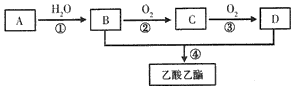 5、推断题 A是一种气态烃。B和D是生活中两种常见的有机物。以A为主要原料合成乙酸乙酯,其合成路线如下图所示: