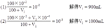 本题解析:本题考查[H+],pH值的计算。因溶液均很稀,所以混合溶液的体积可用两体积之和来表示。设所加液体的体积为V1mL,V2mL,V3mL,V4mL。