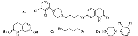 2、填空题 (14分)阿立哌唑(A)是一种新的抗精神分裂症药物,可由化合物B、C、D在有机溶剂中通过以下两条路线合成得到。