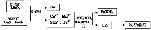 (2)将辉铜矿、软锰矿做如下处理,可以制得碱式碳酸铜: