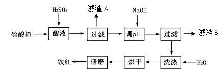 3、填空题 以黄铁矿为原料制硫酸产生的硫酸渣中含Fe2O3、SiO2、Al2O3、MgO等。实验室模拟工业以硫酸渣制备铁红(Fe2O3),过程如下: