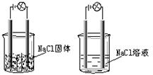 4、选择题 某校化学兴趣小组同学在实验室做实验,按照左图连接好线路发现小灯泡不亮,按照右图连接好线路发现小灯泡会亮,由此得出的结论正确的是