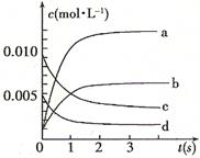 | n(CO2) /mol | 0.10 | 0.060 | 0.040 | 0.040 | 0.040 ? ①20 min时,υ正(CO2 )_ 80 min时。υ逆(H2O)(填“>”、“=”或“<”)。 ②在100 min时,保持其它条件不变,再向容器中充入0. 050 mo1CO2和0. 20 molNH3,重新建立平衡后CO2的转化率与原平衡相比将_????(填“增大”、“不变”或“减小”)。 ③上述可逆反应的平衡常数为_??????(保留二位小数)。 ④根据表中数据在图甲中绘制出在t℃下NH3的转化率随时间变化的图像;保持其它条件不变;则(t+10)℃下正确的图像可能是?????????(填图甲中的“A”或“B”)。 ![]() ⑤图乙所示装置(阴、阳极均为惰性电极)可用于电解尿素〔CO(NH2)2〕的碱性溶液制取氢气。该装置中阳极的电极反应式为????????????????,若两极共收集到气体22. 4L(标 况),则消耗的尿素为????????????g(忽略气体的溶解)。 参考答案:21.(1)C; (2)①>;②增大;③76.53④B 本题解析: 本题难度:困难 3、选择题 一定条件下,反应2NO2(g)?2NO(g)+O2(g),下列哪一种状态可能没有达到化学反应限度( ) 参考答案:A.V(NO2):V(NO):V(O2)=2:2:l说明了反 本题解析: 本题难度:一般 4、填空题 在2L密闭容器内,800℃时反应:2NO(g)+O2(g)
