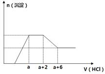 4、选择题 某溶液中可能含有OH-、CO32-、AlO2-、SiO32-、SO42-、Na+、Fe3+、Mg2+、Al3+等离子。当向该溶液中加入一定物质的量浓度的盐酸时,发现生成沉淀物质的量随盐酸的体积变化的如下图所示,下列说法正确的是
