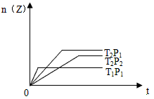 2Z(g);△H<0(正反应为放热反应) 在不同温度(T1和T2)及压强(P1和P2)下,产物Z的物质的量[n(Z)]与反应时间(t)的关系如图所示。则下列判断正确的是
