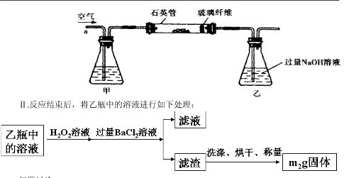 g该黄铁矿样品放入如图1所示装置(夹持和加热装置省略)的石英管中,从a处不断地缓缓通入空气,高温灼烧石英管中的黄铁矿样品至反应完全。石英管中发生反应的化学方程式为:4FeS2+11O2
