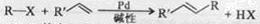 4、填空题 美日三名化学家[理查德·赫克(Richard Heck,美)、根岸荣—(Ei – ich Negishi,日)、铃木章(Akira Suzuki,日)利用钯(Pd)作催化剂,将有机化合物进行“裁剪”、“缝合”,创造出具有特殊功能的新物质而荣获2010年诺贝尔化学奖。赫克反应(Heck反应)的通式可表示为(R – X中的R通常是不饱和烃基或苯环;R′CH=CH通常是丙烯酸酯或丙烯腈等):