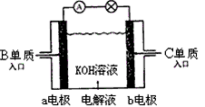 (4)B、C单质已被应用于字宙飞船的燃料电池中,如下图所示,两个电极均由多孔性碳构成,通入的两种单质由孔隙逸出并在电极表面放电。b是电池的_______ 极;a电极上的电极反应式是____________ 。