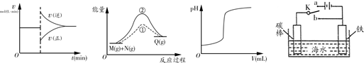 B.图乙中①、②曲线分别表示反应M(g)+N(g)→Q(g)ΔH >0使用和未使用催化剂时,反应过程中的能量变化