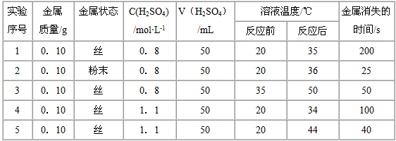 3、实验题 某研究性学习小组研究外界因素对反应速率的影响。下表是稀硫酸与某金属反应的实验数据