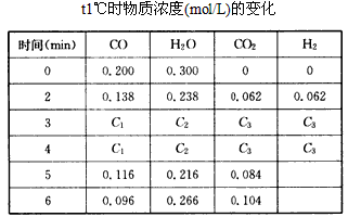 (3)t1℃(高于850℃)时,在相同容器中发生上述反应,容器内各物质的浓度变化如下表。