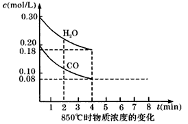 (2)在一体积为10L的容器中,通入一定量的CO和H2O,在850℃ 时发生如下反应: