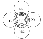 1、选择题 如图所示,两圆圈相交的阴影部分表示圆圈内物质相互发生的反应,其中属于氧化还原反应,但水既不作氧化剂也不作还原剂的是(?? )