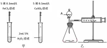 | D | 浓硫酸 | 亚硫酸钠 | 溴水 | 橙色褪去 | SO2具有漂白性![]() 参考答案:C 本题解析: 本题难度:一般 4、选择题 以下实验能获得成功的是( ) 参考答案:D 本题解析:考查物质的鉴别。乙烯和乙炔都能使酸性高锰酸钾溶液褪色,A不正确。苯和液溴在催化剂的作用下生成溴苯,而不是溴苯,B不正确。苯和硝基苯互溶,不能直接分液,C不正确。氧化铜在加热的条件下能把乙醇氧化生成乙醛,而氧化铜被还原生成铜,所以正确的答案是D。 本题难度:简单 5、实验题 为比较Fe2+和Cu2+对H2O2分解的催化效果,某化学研究小组的同学分别设计了如图甲、乙所示的实验。请回答下列问题: 参考答案: 本题解析:略 本题难度:简单 |