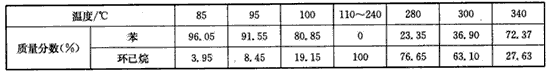 1、选择题 研究温度对苯催化加氢的影响,以检验新型镍催化剂的性能。其他条件相同,定时取样分离出氢气后,分析成分
