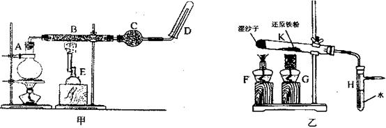 2、实验题 (12分)某同学欲在实验室中完成Fe与水蒸气反应的实验,装置如图甲、乙两种。