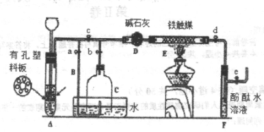 ③用酒精灯加热反应管E,继续通入氢气,待无底细口瓶C内水位下降到液面保持不变时,打开弹簧夹b,无底细口瓶C内气体经D进入反应管E,片刻后F中的溶液变红。