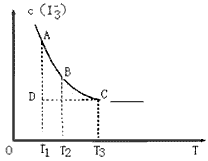 I3-(aq)上述平衡体系中,I3-的物质的量浓度c(I3-)与温度T的关系如图所示(曲线上的任何一点都表示平衡状态),下列说法不正确的是