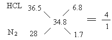 5、选择题 在烧瓶中充满干燥标准状况下HCl与N2的混合气,已知其相对分子质量为34.8,进行喷泉实验后所得溶液的物质的量浓度为