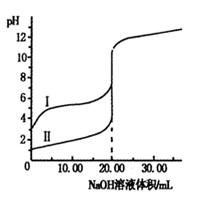 3、选择题 室温下,用0.100 0 mol·L-1NaOH溶液分别滴定体积均为20.00 mL的盐酸和醋酸溶液,滴定曲线如右图。下列说法正确的是