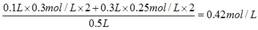 2、选择题 取100mL0.3mol/L硫酸和300mL0.25mol/L的硫酸溶液,混合后稀释到500 mL,则得到的混合溶液中氢离子的物质的量浓度为