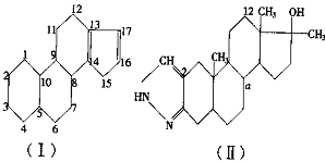 于1984年公布的违禁药物之一。从结构上看,类固醇是一类含有环戊烷多氢菲核(如I式)基本结构的化合物。这类药物之一的-烷基化睾酮衍生物如康力龙(其结构简式如II式),由于其分子中