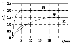 3、选择题 向甲、乙、丙三个密闭容器中充入一定量的A和B,发生反应:A(g) + xB(g) 2C(g)。各容器的反应温度、反应物起始量,反应过程中C的浓度随时间变化关系分别以下表和下图表示: