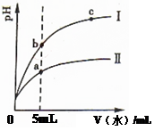 4、选择题 某温度下,分别稀释等pH值的盐酸和醋酸,溶液pH随加入水的体积变化的曲线如右图所示。据图判断下列说法正确的是(?????)