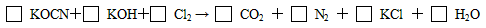 (2)投入过量液氯,可将氰酸盐进一步氧化为氮气。请配平下列化学方程式,并标出电子转移方向和数目: