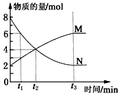 4、选择题  在一定温度下,容器内某一反应中M、N的物质的量随反应时间变化的曲线如下图所示,下列表述正确的是